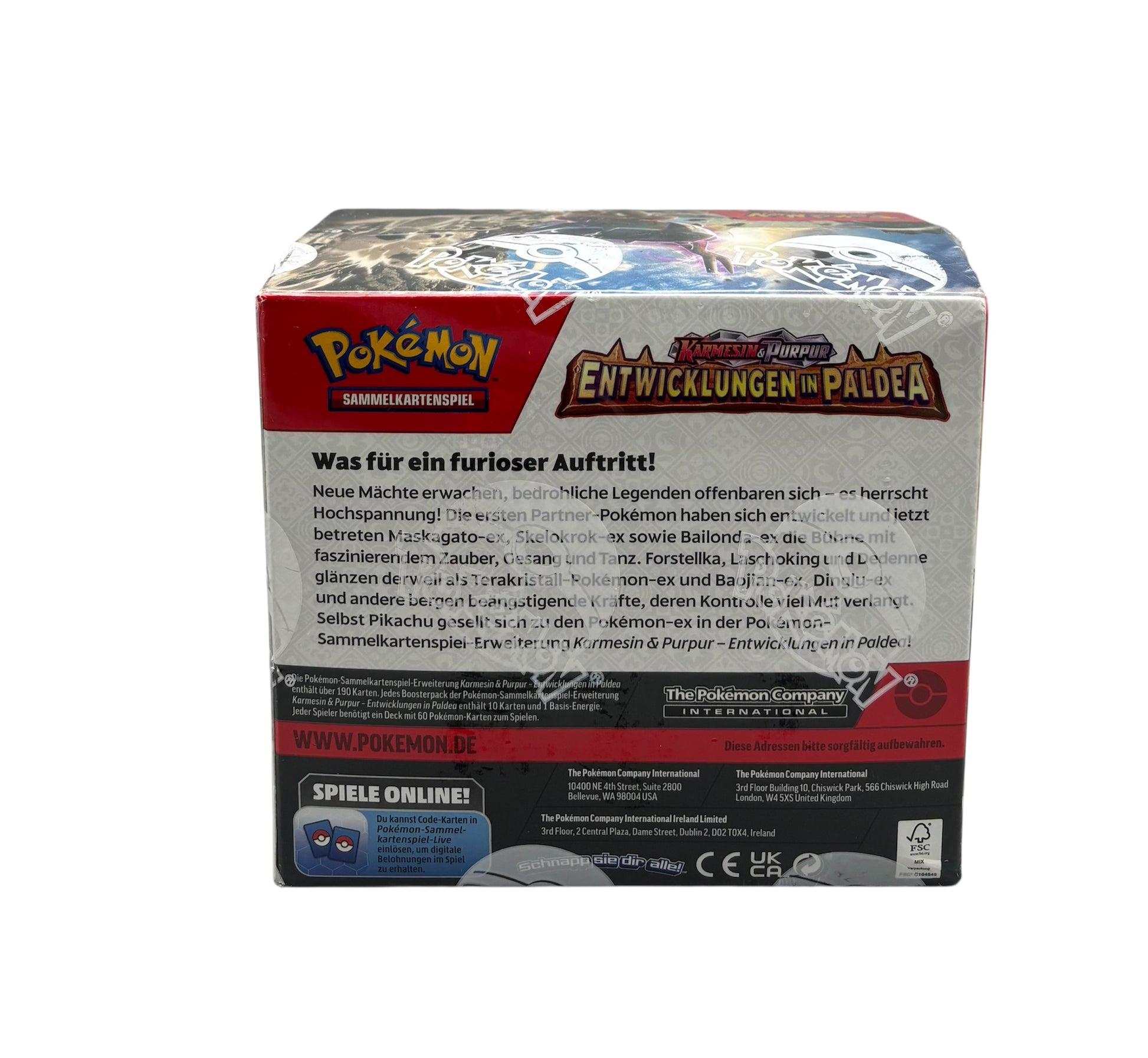 - Inhalt: 36 Boosterpacks der Karmesin & Purpur Erweiterung Entwicklungen in Paldea