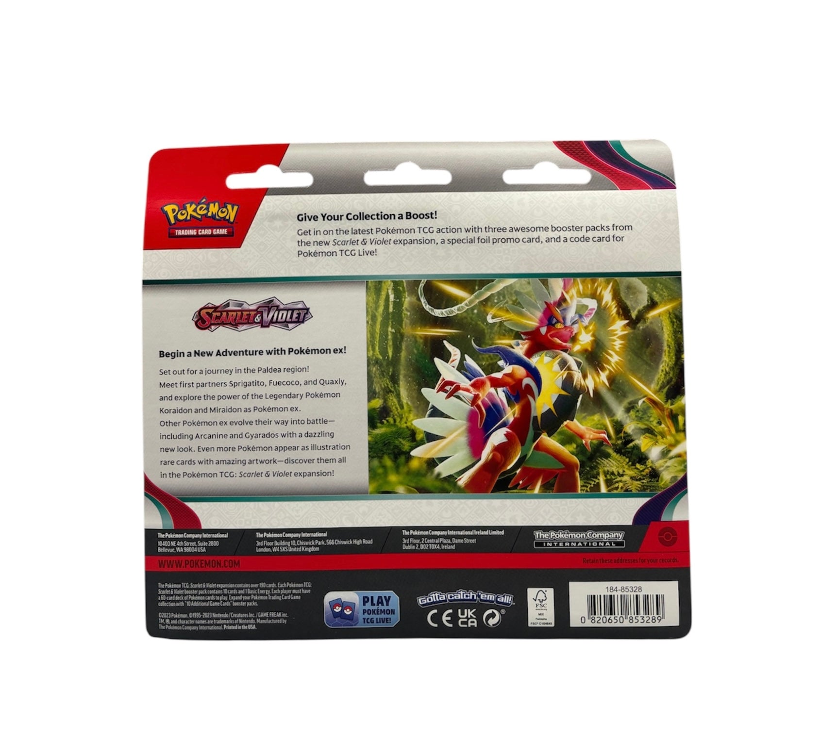 - Inhalt: 3 Boosterpacks der Karmesin & Purpur Erweiterung S&V Base und Promokarte Dondozo